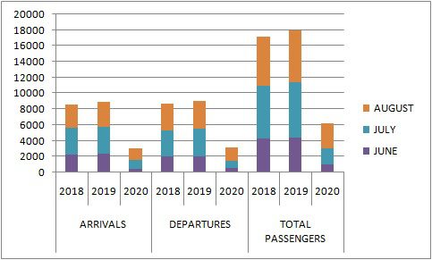 Σύμφωνα με τα πρόσφατα στατιστικά στοιχεία που εξέδωσε η Υπηρεσία Πολιτικής Αεροπορίας για την κίνηση στα ελληνικά αεροδρόμια, η επιβατική κίνηση για το αεροδρόμιο των Κυθήρων έφτασε μόλις στο 1/3 σε σχέση με τα περυσινά μεγέθη. Συγκεκριμένα, όσον αφορά στην κίνηση εσωτερικού, που αποτελεί τη συντριπτική πλειονότητα της αεροπορικής κίνησης του νησιού, ο αριθμός των επιβατών προς και από το αεροδρόμιο «Αλέξανδρος Ωνάσης» για το διάστημα Ιούνιος-Αύγουστος 2020, μειώθηκε γύρω στο 65%, έναντι της αντίστοιχης περιόδου του 2019. Στο γεγονός αυτό συντέλεσε σαφώς ο πολύ μικρότερος αριθμός πτήσεων που πραγματοποιήθηκε σε σχέση με τα δύο τελευταία χρόνια, οι οποίες φέτος το καλοκαίρι ήταν λιγότερες από τις μισές (μείωση 52%). Σημειώνεται ότι το καλοκαίρι του 2019, με πραγματοποίηση περίπου ίδιου αριθμού πτήσεων σε σχέση με το καλοκαίρι του 2018, η κίνηση επιβατών είχε σημειώσει άνοδο άνω του 4%.